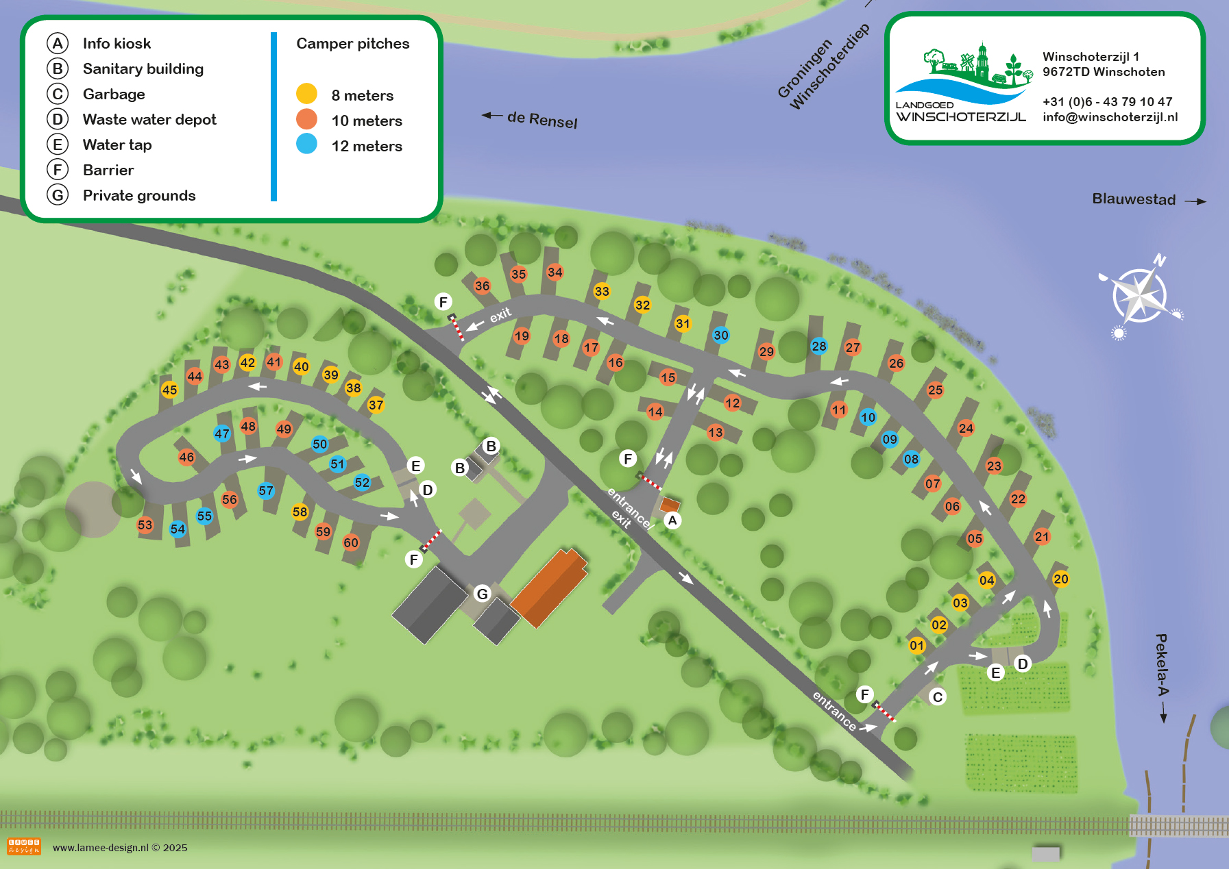 View the map of Camperpark Landgoed Winschoterzijl here.